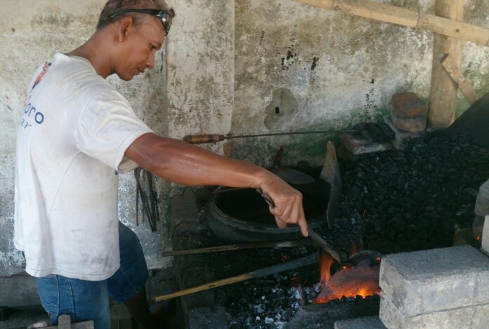 Ponorogo – Profesi pande besi atau tukang besi di Kabupaten Ponorogo saat ini sudah jarang dijumpai. Sebab, alat-alat yang dihasilkan dari pande besi seperti cangkul, pisau, sabit, kapak dan alat pertanian lainnya sudah bisa diproduksi secara massal di pabrik. Alhasil, barang yang beredar di pasaran dibanjiri produk buatan mesin dari pabrik.