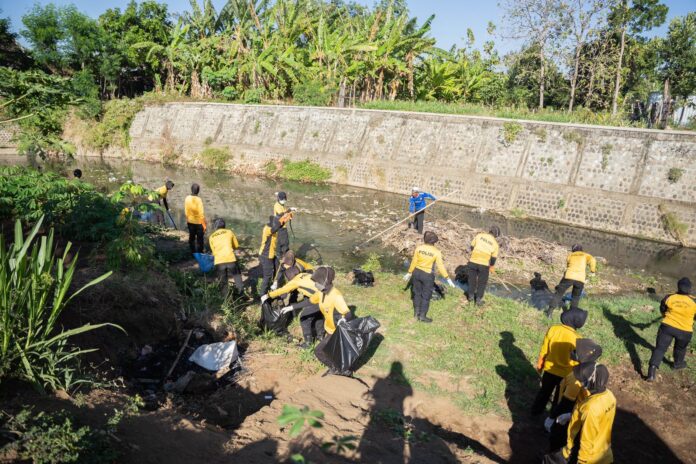 Kali ini, sungai yang berada di jalan Subali, Kelurahan Surodikraman, Kecamatan Kota menjadi sasaran utama para Srikandi Bhayangkara Polres Ponorogo tersebut.
