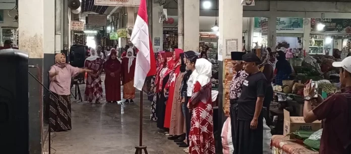 Pacitan – Haru biru mewarnai upacara bendera sederhana di dalam pasar Minulyo, Pacitan. Bagaimana tidak pedagang Pasar menggelar upacara bendera tepat pada 17 Agustus 2023.. Puluhan pedagang dan pengunjung meneteskan air mata saat lagu kebangsaan Indonesia Raya dan mengheningkan cipta dikumandangkan.