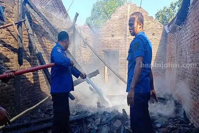 Ponorogo – Dua Rumah di Dusun Sukun Desa Sidoharjo Kecamatan Pulung dilalap si jago merah.