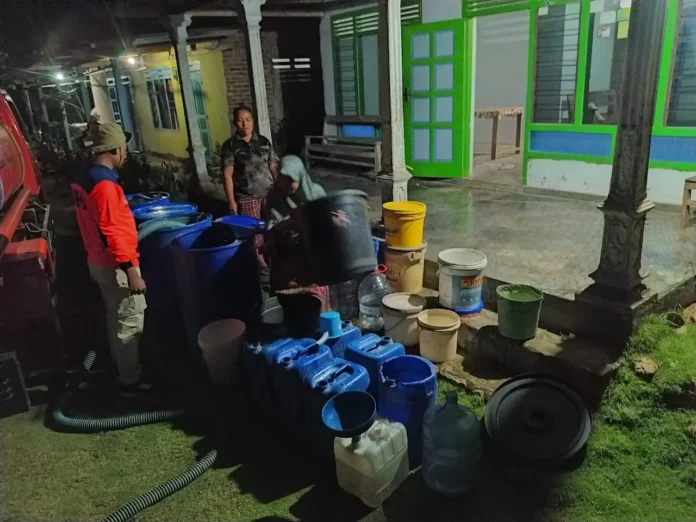 Seperti di Desa Plumpungan, Kebonagung. Warga secara massal mendatangi pasokan air bersih dari Badan Penanggulangan Bencana Daerah (BPBD) Pacitan, Kamis (31/8) malam. Mereka membawa jeriken dan ember. Antrean pun mengular.