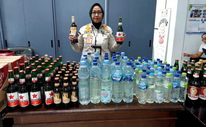 Satpol PP setempat latnas menggelar operasi gabungan dan berhasil mengamankan ratusan botol miras berbagai merek dari angkringan dan sejumlah warung, Kamis (14/9) malam lalu.