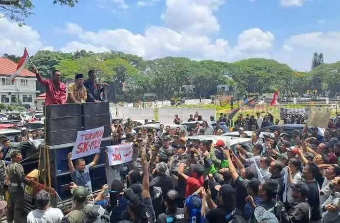 Malang – Wali Kota Malang, Sutiaji menemui massa yang tergabung dalam Malang Online Bersatu (MOB). Massa ini adalah gabungan dari ratusan pengemudi ojek online di Malang yang menggelar demonstrasi besar-besaran di depan Balai Kota dan Gedung DPRD Kota Malang pada Senin, (18/9/2023).