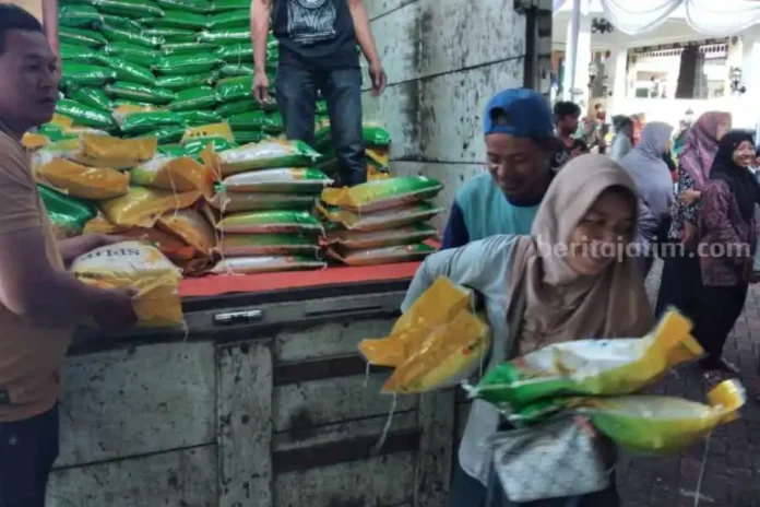 Magetan – Ratusan warga menyerbu pasar murah yang digelar di Pendapa Surya Graha. Sabtu (23/9/2023)