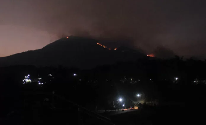 Asap tak berhenti mengepul dari Lawu. Kobaran api terlihat jelas saat malam. karhutla belum berakhir.