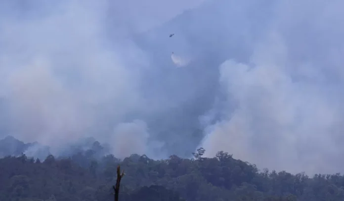 Langkah pemadaman melalui jalur udara diperkuat dengan pembuatan sekat api di darat.