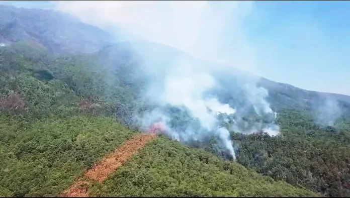 Saat ini, Satgas Penanggulangan karhutla Lawu terus berupaya memadamkan api. Baik dengan menerapkan metode sekat bakar dan gepyok, maupun water bombing. (Yi/RadarMadiun)