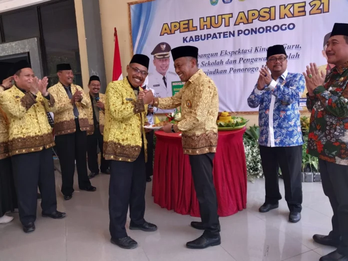 Ponorogo – Asosiasi Pengawas Sekolah Indonesia (APSI) Kabupaten Ponorogo, memperingati hari ulang tahunnya yang ke 21 dengan menggelar kegiatan diantaranya apel upacara yang bertempat di Halaman Gedung PGRI Ponorogo, Jumat (13/10/2023).
