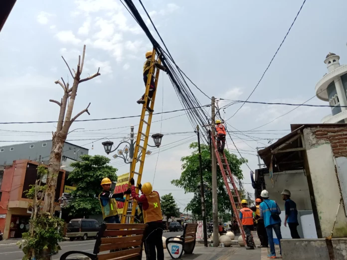 Ponorogo – Kabel listrik jaringan rendah dan telematika PLN di Jalan Hos Cokroaminoto Ponorogo kini dirapikan. Kegiatan ini merupakan hasil kolaborasi PLN Unit Pelaksana Pelayanan Pelanggan (UP3) Ponorogo dan PLN Icon Plus, Subholding Beyond Kwh PLN.