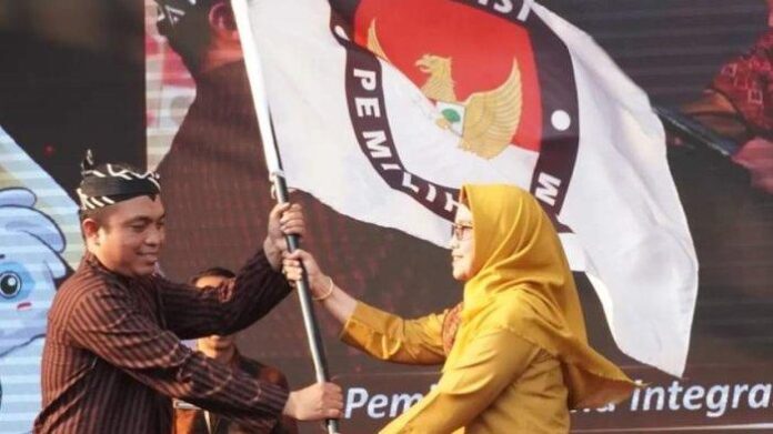 Nganjuk – Pemkab Nganjuk bersama Komisi Pemilihan Umum (KPU) menggelar Kirab Pemilu 2024. Estafet Kirab Pemilu diterima langsung dari Kota Malang oleh Kabupaten Nganjuk, Jumat (20/10/2023) dan akan dikirab selama 5 hari dengan menghampiri 20 Kecamatan..