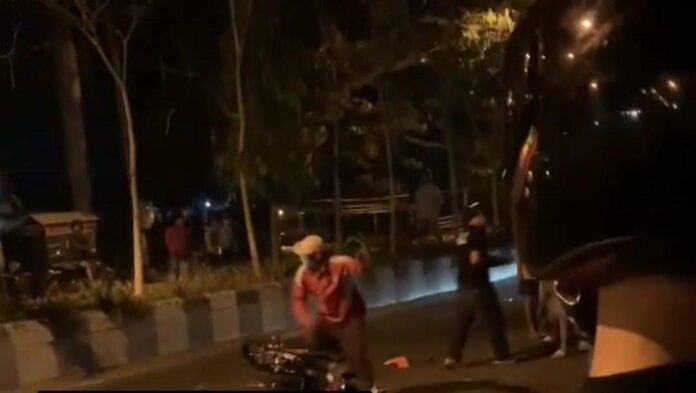 Ponorogo – Viral di medsos seorang pembalap liar terjatuh di Jalan Suromenggolo, Ponorogo. Motornya langsung dirusak warga. Video berdurasi 1 menit 5 detik itu pun menjadi perhatian warganet.