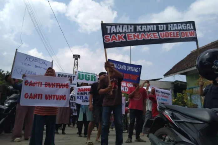 Tulungagung – Warga Kelurahan Panggungrejo, Kabupaten Tulungagung melakukan aksi protes menolak nilai ganti rugi tanah yang terdampak Tol Kediri-Tulungagung.