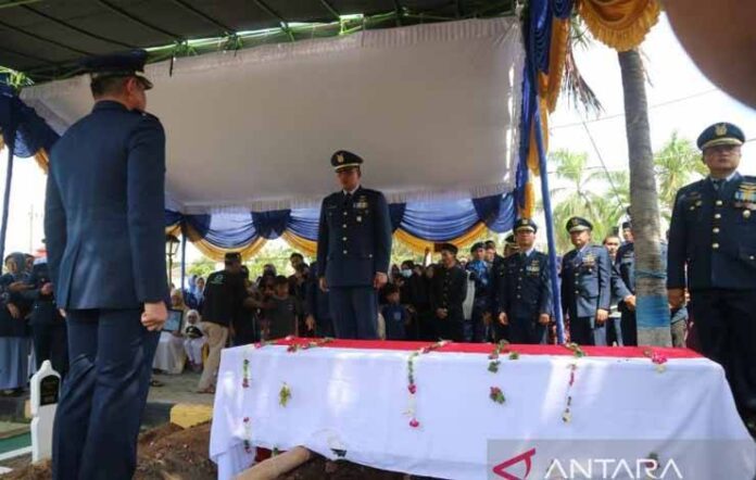 Madiun – Jenazah Letkol Penerbang (Anumerta) Yuda Seta (38) Pilot Super Tucano yang gugur dalam kecelakaan pesawat latih tempur milik TNI AU di Pasuruan, dimakamkan di Taman Makam Pahlawan (TMP) Kota Madiun, Jawa Timur, Jumat (17/11/2023).