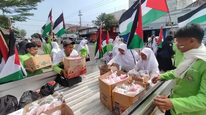 Wonogiri – Massa yang mengatasnamakan Masyarakat Wonogiri Peduli Palestina menggelar aksi damai. Aksi damai itu diisi dengan doa bersama dan juga pembagian semangka kepada warga di depan Pasar Kota Wonogiri Jumat (24/11/2023). Massa membawa bendera Indonesia, Palestina dan juga sejumlah poster bentuk dukungan kepada Palestina.