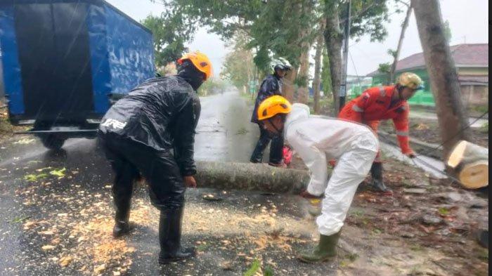 Kemudian, pukul 14.35 wib angin kencang menerjang lokasi. Angin kencang mengakibatkan pohon dengan jenis kluweh tumbang menutup akses jalan.