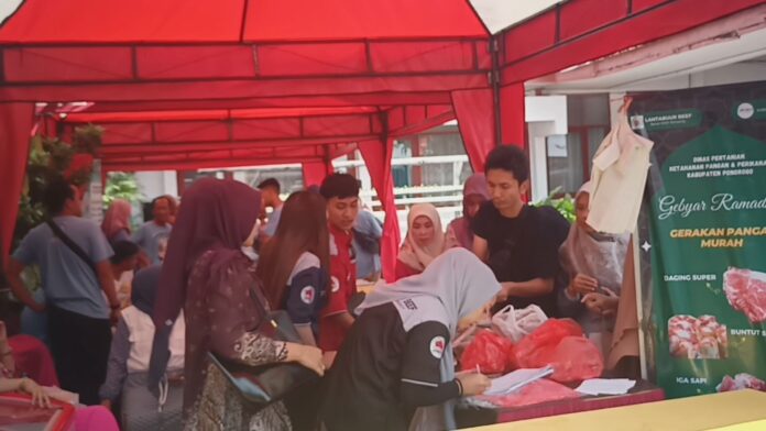 Ponorogo – Dinas Pertanian, Ketahanan Pangan, dan Perikanan Kabupaten Ponorogo menggelar kegiatan Gerakan Pangan Murah pada Selasa, (25/03/2025). Kegiatan ini berlangsung di Halaman Kantor Dinas Pertanian, Ketahanan Pangan, dan Perikanan Kabupaten Ponorogo, yang berlokasi di Jl. Urip Sumoharjo Nomor 58, Ponorogo.