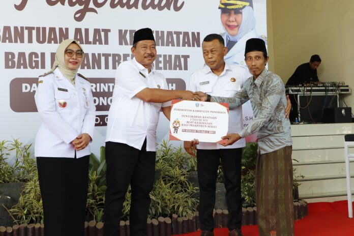 Ponorogo – DPRD Kabupaten Ponorogo menyerahkan bantuan alat kesehatan kepada sejumlah pesantren dalam acara yang digelar di Halaman Depan Gedung Terpadu Jl. Basuki Rahmad Tonatan, Rabu (7/5/2025). Kegiatan ini merupakan upaya mendukung program “Pesantren Sehat” melalui penyediaan alat pendeteksi kesehatan dan pendampingan oleh Dinas Kesehatan setempat.