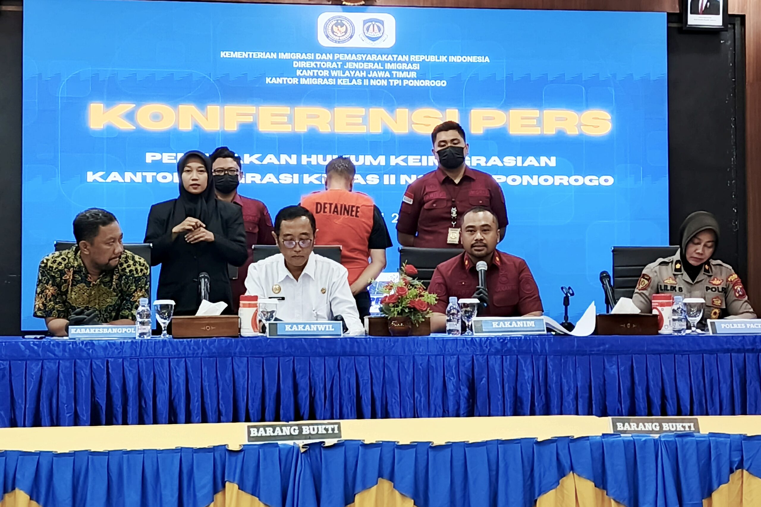 Ponorogo – Kantor Imigrasi Kelas II Non TPI Ponorogo berhasil mengamankan seorang warga negara asing (WNA) asal Irak berinisial HHMA (pria, 43 tahun) pada Jumat (09/05/2025). Penangkapan ini disampaikan langsung oleh Kepala Kantor Imigrasi Kelas II Non TPI Ponorogo, Happy Reza Dipayuda, A.Md.Im., S.H., M.H., didampingi perwakilan dari Kantor Imigrasi Wilayah, Polres Pacitan, dan Pemkab Pacitan.