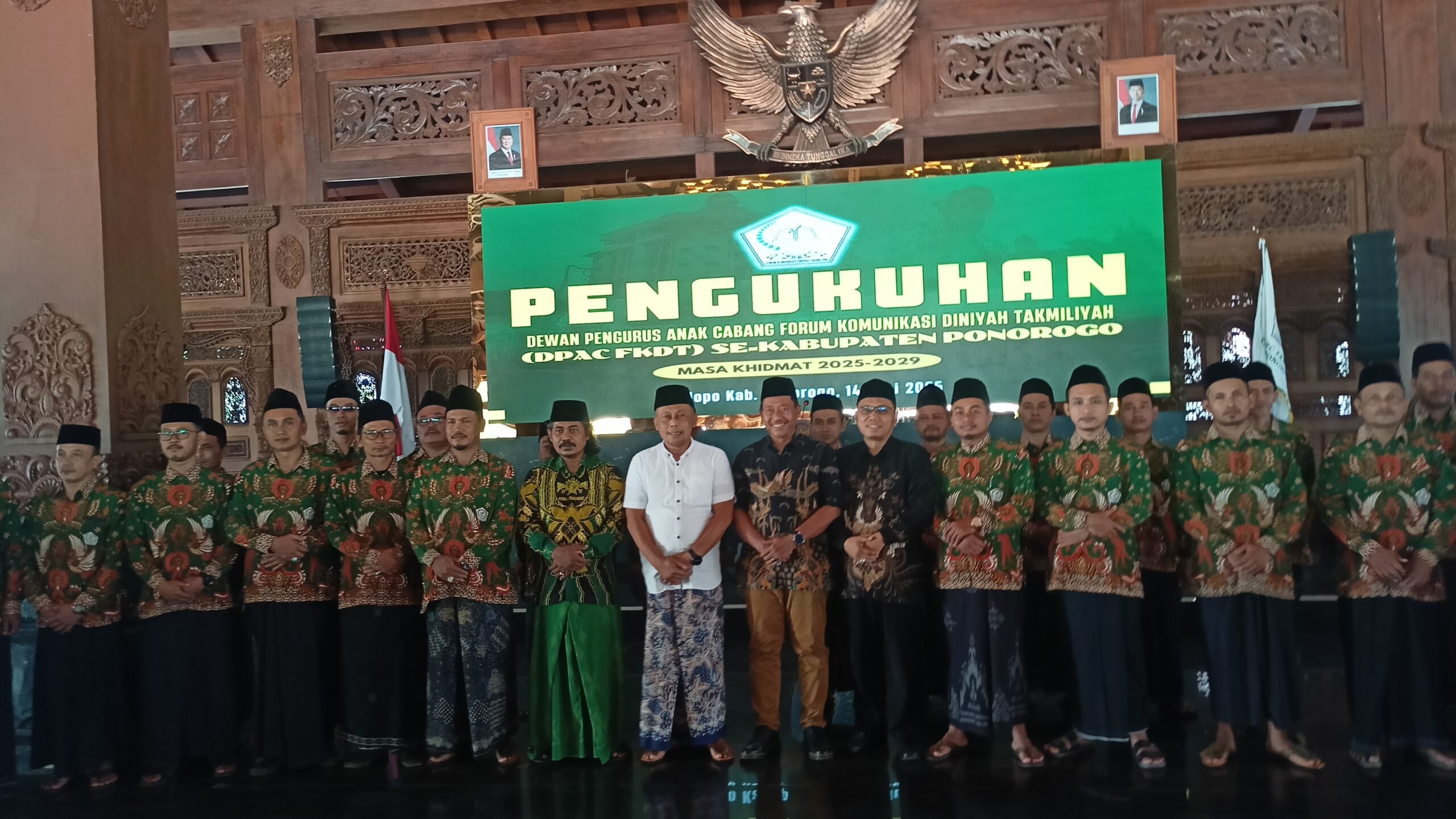 Ponorogo – Bertempat di Pendopo Kabupaten Ponorogo, digelar Pelantikan Pengurus Dewan Pimpinan Anak Cabang (DPAC) Forum Komunikasi Diniyah Takmiliyah (FKDT) se-Kabupaten Ponorogo pada Sabtu (14/6/2025). Acara yang dimulai pukul 08.00 WIB ini dihadiri oleh Bupati Ponorogo, Sugiri Sancoko, yang dalam sambutannya menekankan pentingnya pembangunan peradaban dan akhlak mulia bagi generasi muda.