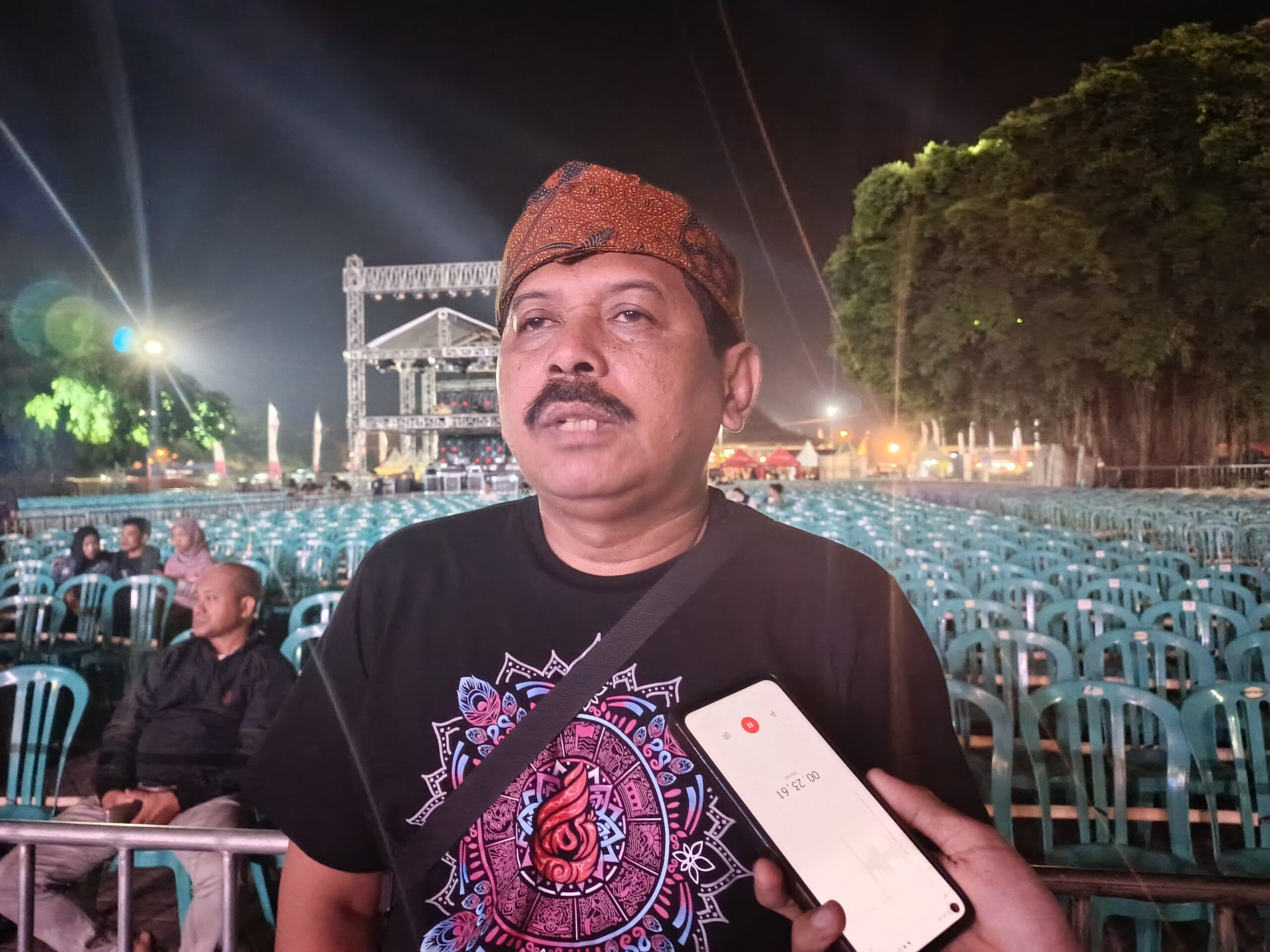 Kepala Dinas Pariwisata Ponorogo, Judha Slamet Sarwo Edi, Saat diwawancarai awak media di depan panggung Grebeg Suro, Alun-alun Ponorogo, pada Senin (16/6/2025). Ia menegaskan bahwa persiapan event ini tidak dilakukan secara instan. Segala sesuatu sudah mulai dirancang sejak lima bulan lalu, termasuk skema anggaran dan pelibatan berbagai pihak. “Persiapan Grebeg Suro ini sebenarnya sudah kita laksanakan jauh hari sebelumnya, bahkan hampir lima bulan yang lalu. Karena yang pertama harus kita persiapkan adalah soal finansial. Kalau kita mau melaksanakan kegiatan, harus jelas dulu sumber anggarannya,” jelas Judha.