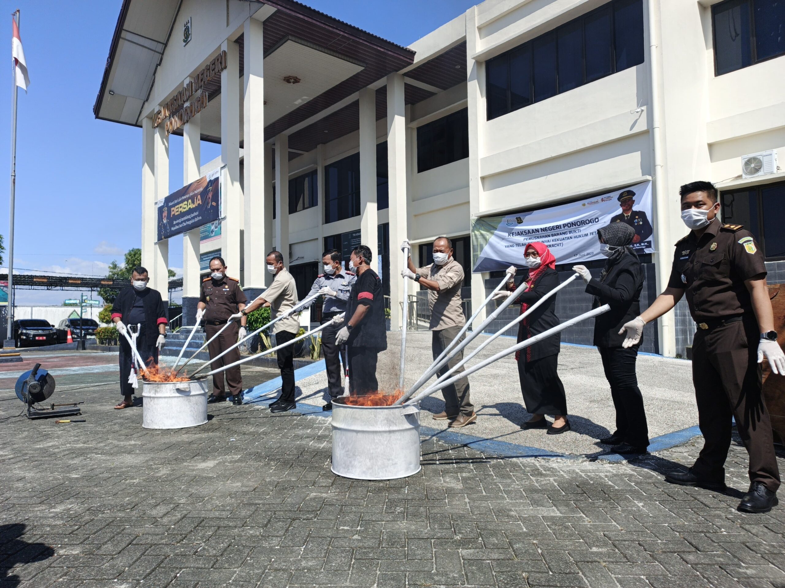 Sementara itu Kepala Kejaksaan Negeri Ponorogo, Dr. Teuku Herizal, S.H., M.H., Dalam sambutannya, kegiatan ini merupakan bagian dari sistem peradilan pidana terpadu yang diawali dari penyidikan oleh kepolisian, penelitian oleh jaksa penuntut umum, hingga persidangan dan putusan hakim. “Pemusnahan barang bukti hari ini adalah bentuk nyata dari kepastian hukum, setelah perkara memperoleh kekuatan hukum tetap dan tidak ada upaya hukum lanjutan dari para pihak,” tegasnya.