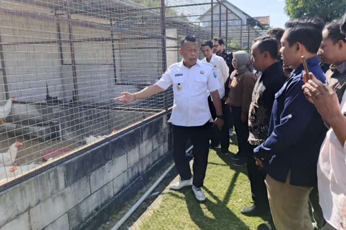 PONOROGO – Bupati kabupaten Ponorogo, Sugiri Sancoko memamerkan keberhasilannya dalam berternak ayam petelur skala kecil dihadapan 20 orang perwakilan anggota BUMDES se-kabupaten Ponorogo di halaman belakang rumah dinas Bupati, Rabu, (16/07/2025).