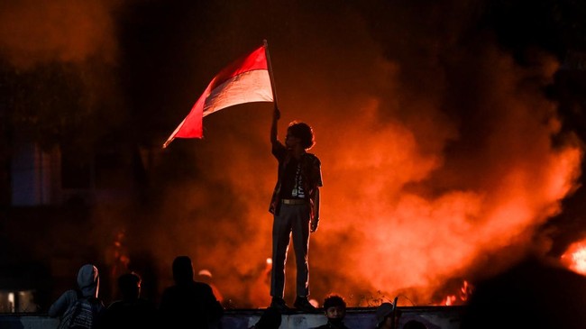 Situasi sempat memanas. Laporan dari lokasi menyebutkan adanya lemparan gas air mata dari aparat serta molotov dari massa aksi. Sementara itu, di sisi kanan Gedung DPR terlihat api menyala akibat ban yang dibakar, dan sebagian tembok pagar kompleks parlemen dirusak.