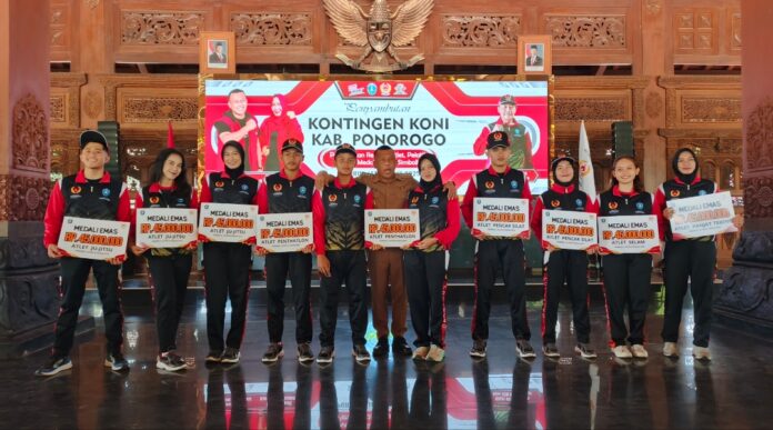 PONOROGO – Pemerintah Kabupaten (Pemkab) Ponorogo secara resmi menyambut kepulangan kontingen dan menyerahkan reward secara simbolis kepada atlet serta pelatih yang berhasil meraih medali pada Pekan Olahraga Provinsi (Porprov) Jatim IX 2025. Acara tersebut digelar di Pendopo Agung Kabupaten Ponorogo pada Selasa (9/9/2025).