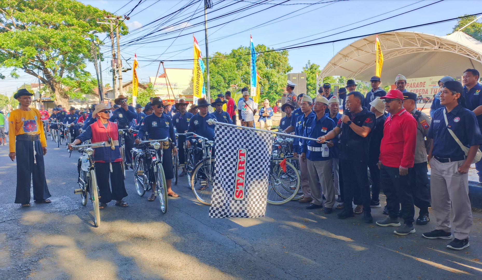 “Parade sepeda tua ini tidak hanya sehat tapi juga menyenangkan, tidak hanya hebat tapi juga happy. Semoga acaranya lancar dan kita semua selalu sehat. Satu sepeda, sejuta saudara. Maka secara resmi, dalam rangka Haornas, kita berangkatkan parade sepeda tua!” ujar Bupati Sugiri dengan penuh semangat, yang disambut sorak gembira dari seluruh peserta.