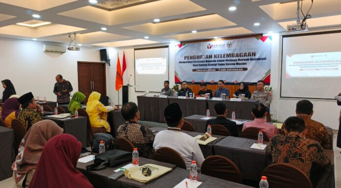 PONOROGO – Badan Pengawas Pemilihan Umum (Bawaslu) Kabupaten Ponorogo menggelar acara bertajuk “Penguatan Kelembagaan: Memperkuat Eksistensi Bawaslu dalam Menjaga Marwah Demokrasi Kuat Karena Sinergi Tegas Karena Mandat”. Kegiatan yang berlangsung di Maesa Hotel, Kamis (18/9/2025). Kegiatan ini merupakan bagian dari rangkaian serentak se-Jawa Timur yang akan berjalan hingga akhir Oktober.