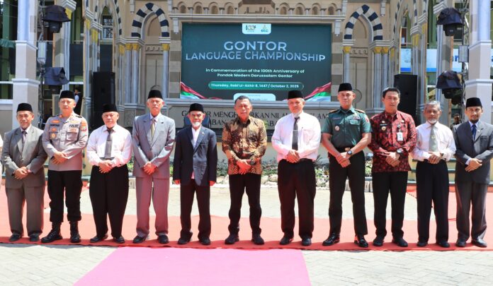 PONOROGO – Pondok Modern Darussalam Gontor kembali menunjukkan komitmennya dalam mencetak kader umat dan bangsa yang unggul di kancah global. Dalam rangka menyemarakkan satu abad perjalanannya, institusi pendidikan ternama ini secara resmi membuka Gontor Language Championship (GLC) 2025 pada Kamis (2/10/2025). Acara pembukaan yang berlangsung di depan Gedung Laboratorium MIPA itu dihadiri oleh segenap civitas akademika Gontor dan tamu undangan.